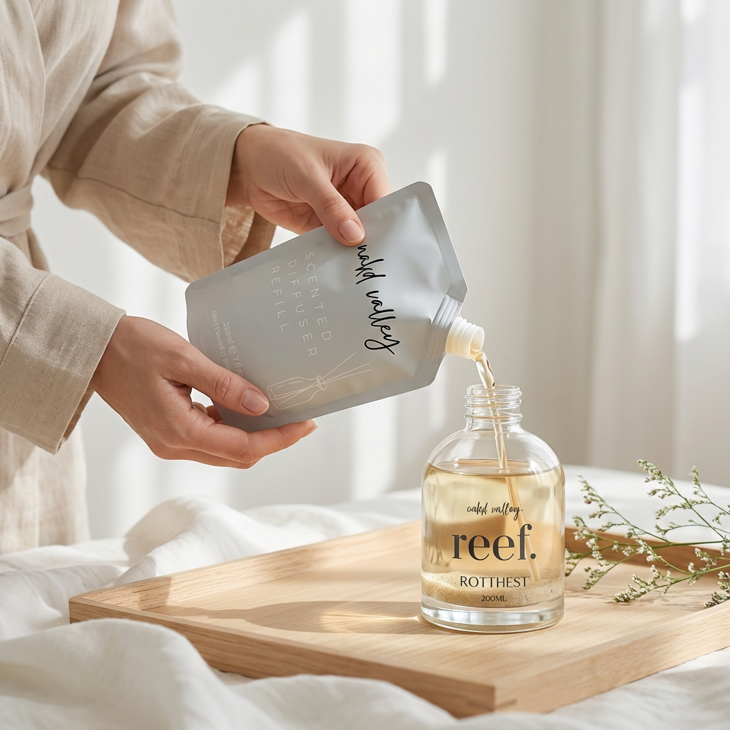 Our reed diffuser refill pouches offer a convenient solution for replenishing...